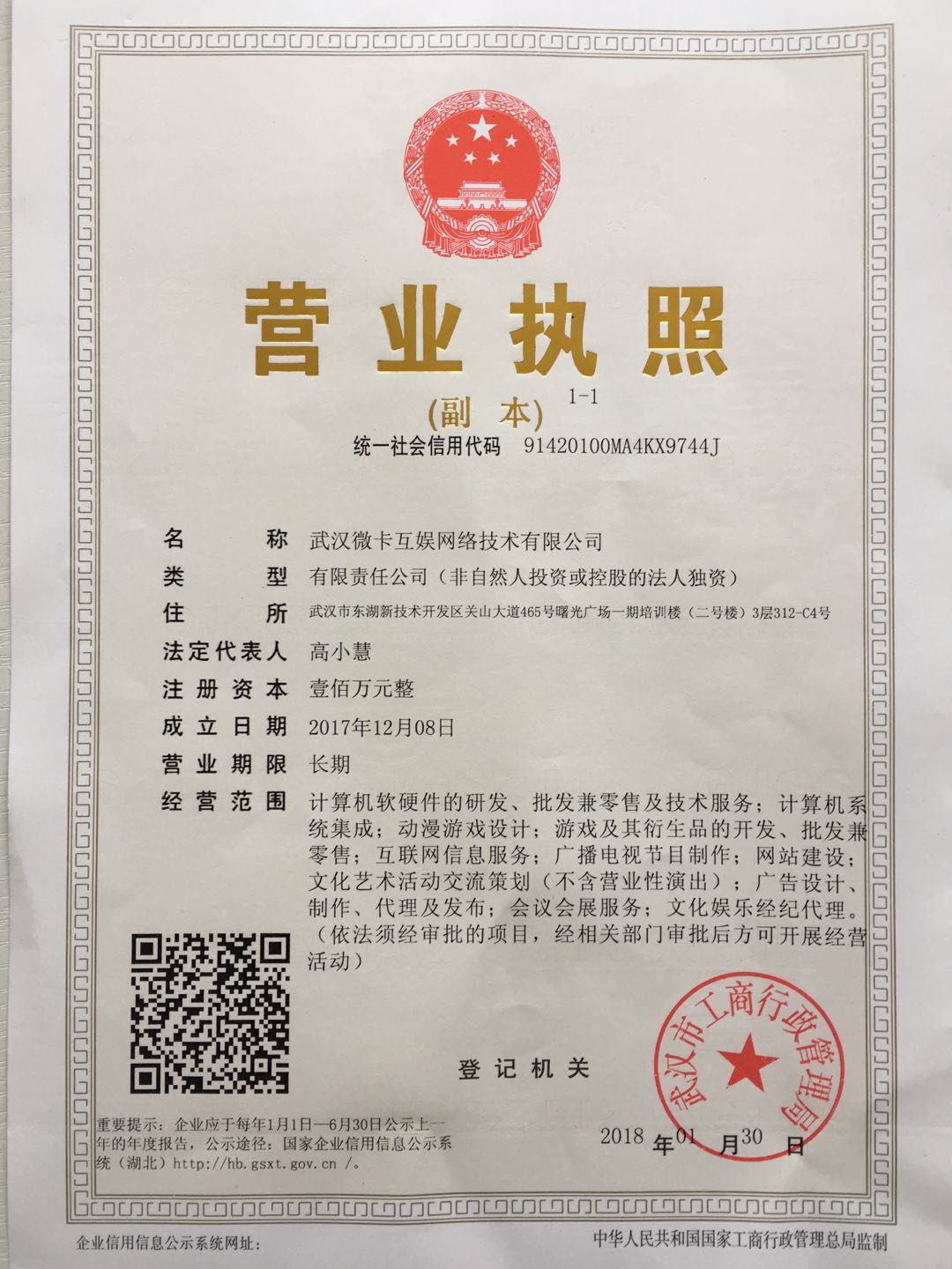 武汉微卡互娱网络技术有限公司《企业营业执照》